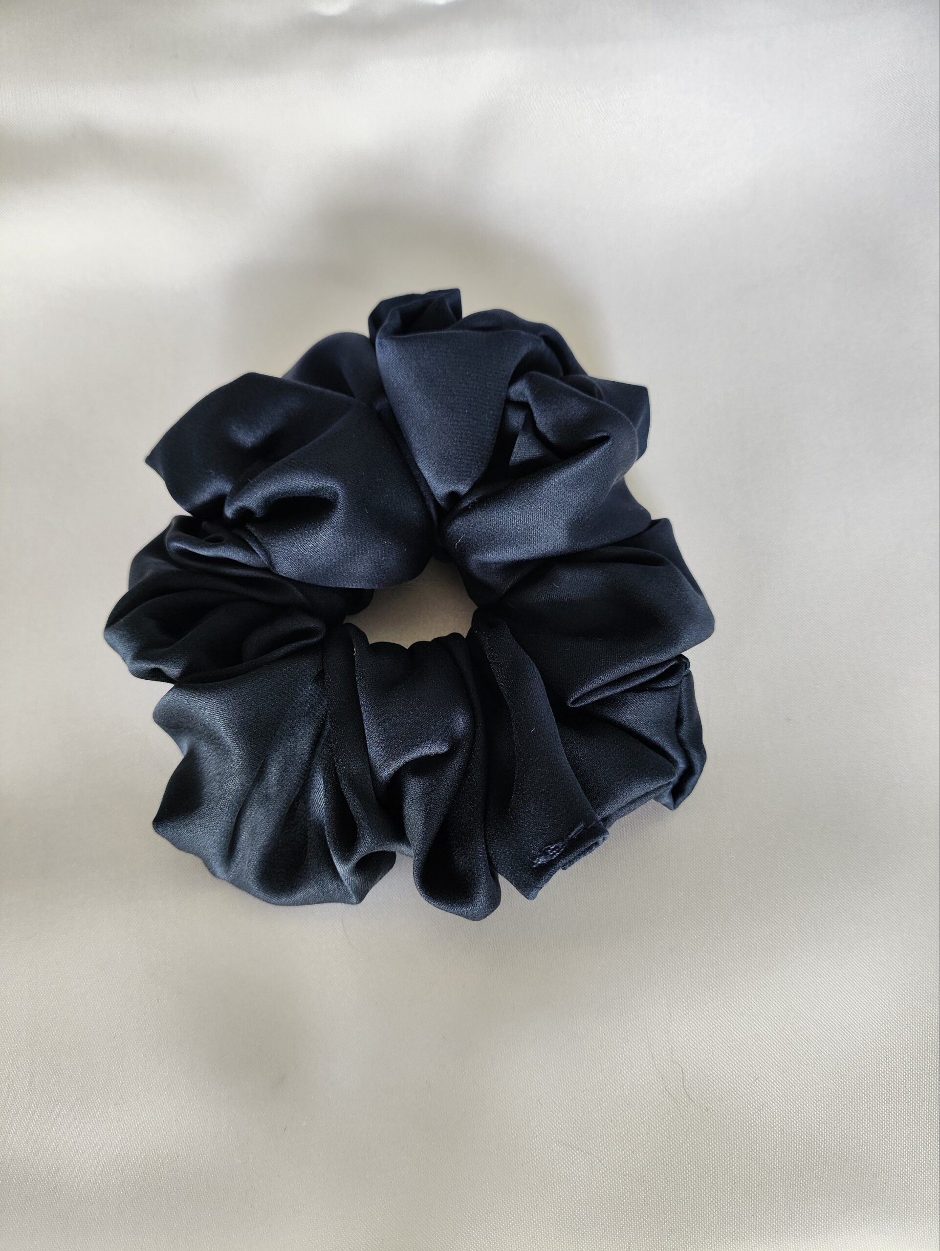 Jedwabna, satynowa scrunchie w czarnym kolorze. Wykonana w 100% z naturalnego jedwabiu morwowego, ta gumka do włosów łączy w sobie wyjątkowy styl i delikatność.