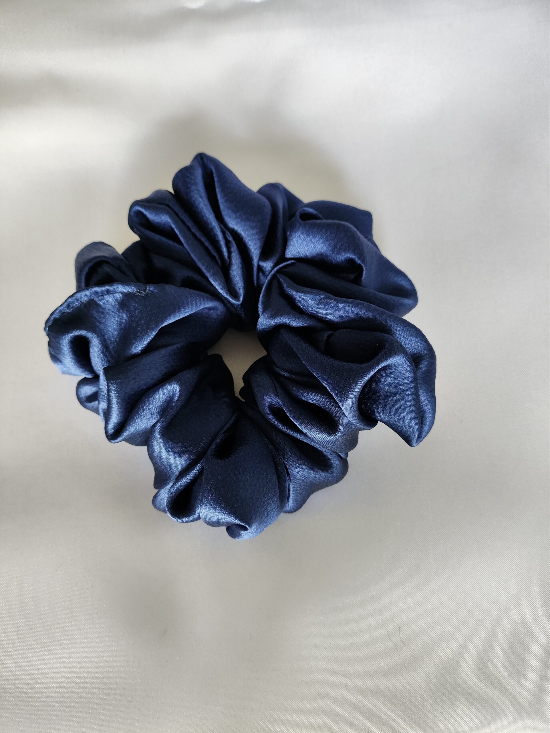 Jedwabna, satynowa scrunchie w granatowym kolorze. Wykonana w 100% z naturalnego jedwabiu morwowego, ta gumka do włosów łączy w sobie wyjątkowy styl i delikatność.